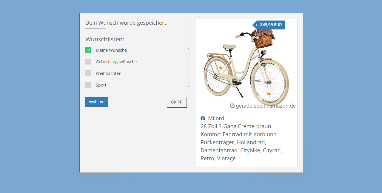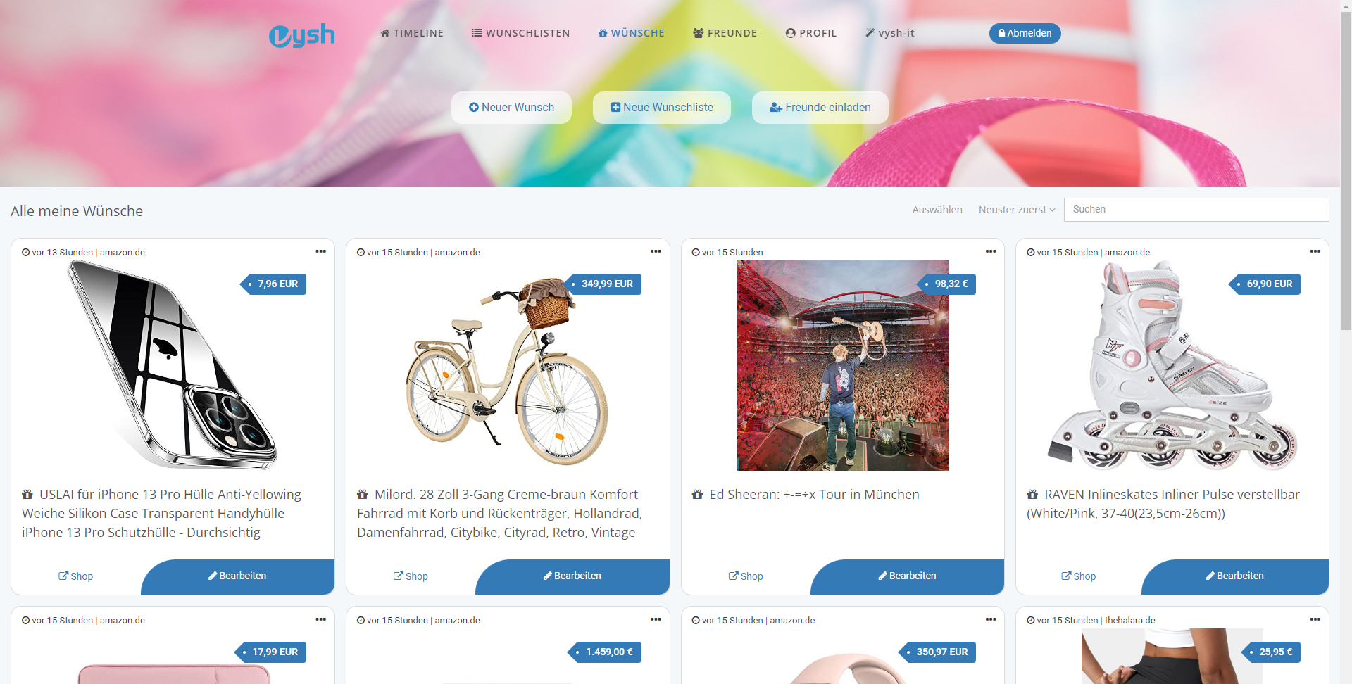 Du bekommst nicht das, was du dir wünscht? Deine Freunde oder Familie wissen oft nicht, was du gut gebrauchen könntest? Dann ist vysh deine Lösung!