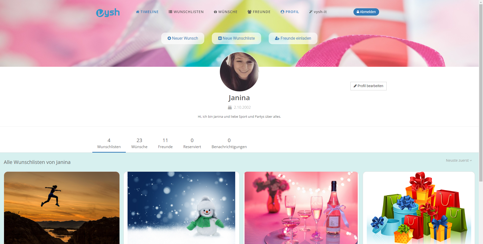 “Jetzt ist es soweit. Ich werde 30! Und bin gerade in eine neue Wohnung gezogen. Es gibt eine rauschende Einweihungs- und Geburtstagsfeier! Und meine Wünsche teile ich in vysh mit Freunden und Familie. Das ist am einfachsten und ich bekomme das, was ich wirklich gebrauchen kann.”